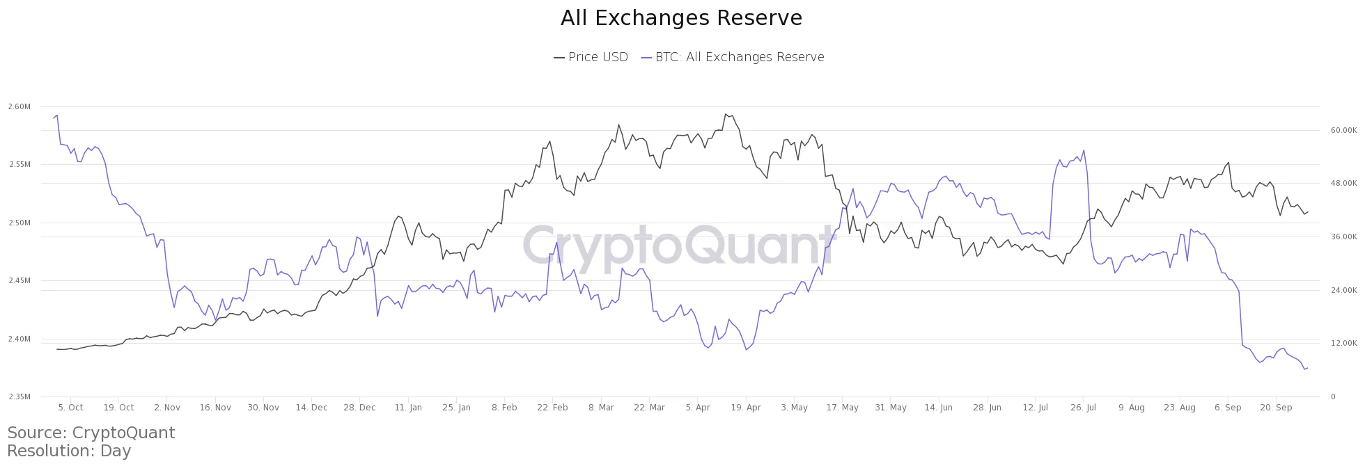Theo dữ liệu từ Cryptoquant, măc dù trong những ngày qua giá BTC vẫn tiếp tục điều chỉnh và lần nữa di chuyển về hỗ trợ quan trọng $40,000 nhưng lượng BTC dự trữ trên các sàn giao dịch vẫn đang có xu hướng giảm.