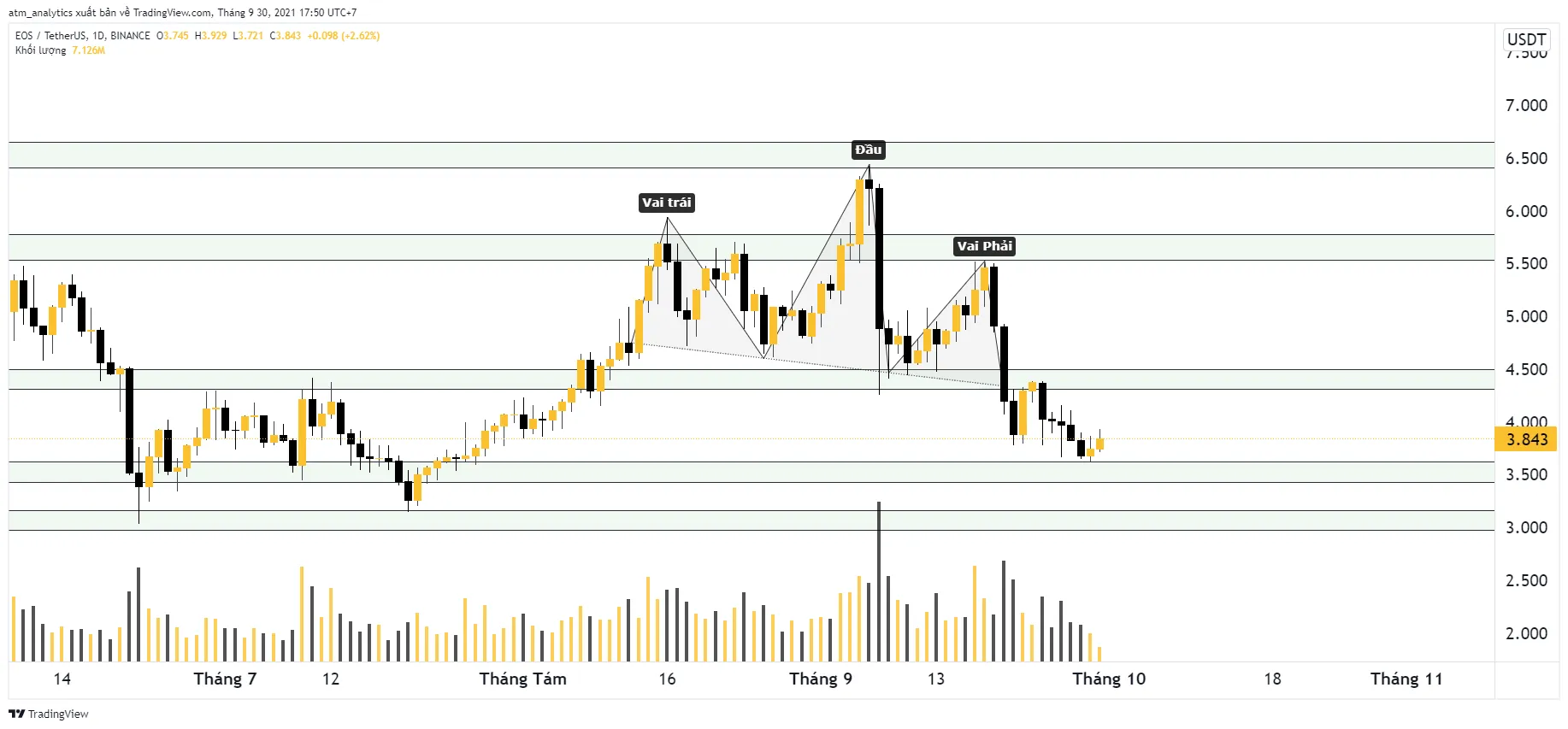 Trong khung D, sau khi quay lại kiểm tra nguồn cung ở ngay viền cổ của mô hình vai đầu vai và phe bán đã chứng minh được sự áp và đẩy giá EOS tiếp tục quay về hỗ trợ $3.6 - $3.4 khá quan trọng.